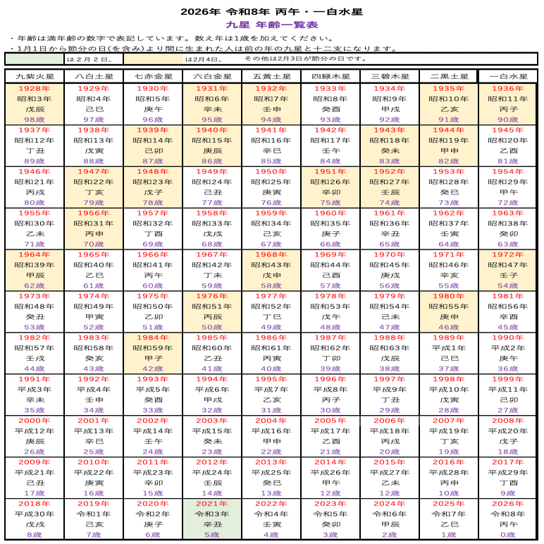 2026年2月4日(立春)〜2027年2月3日(節分)