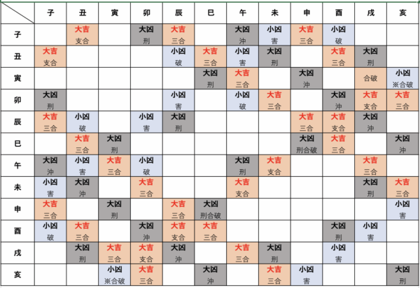 例)子(ね)と午(うま)は真反対の「冲」関係。