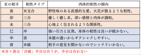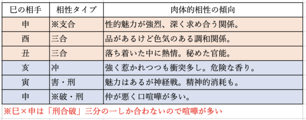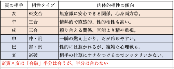 肉体的・情緒的な相性も、この「日支」同士の組み合わせからある程度の