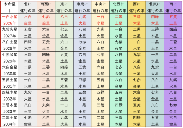 2026年 星回り(年回り)表 一白水星 中宮の年