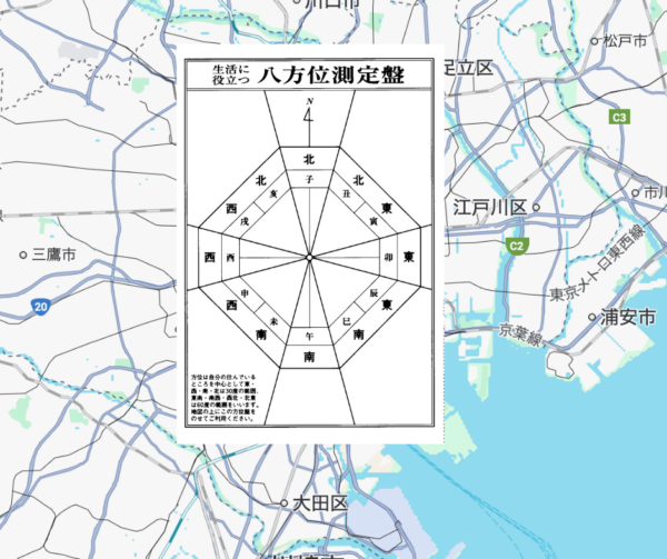 を参考に自分の住居(実際に住んでいる住居)から八方位を正しく知って下さい。